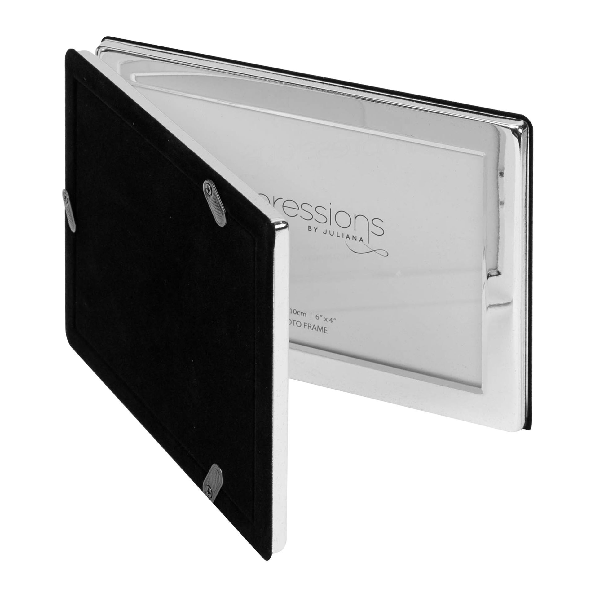 A hinged silver plated photo frame from IMPRESSIONS® by Juliana. Complete with luxury black velveteen backing.