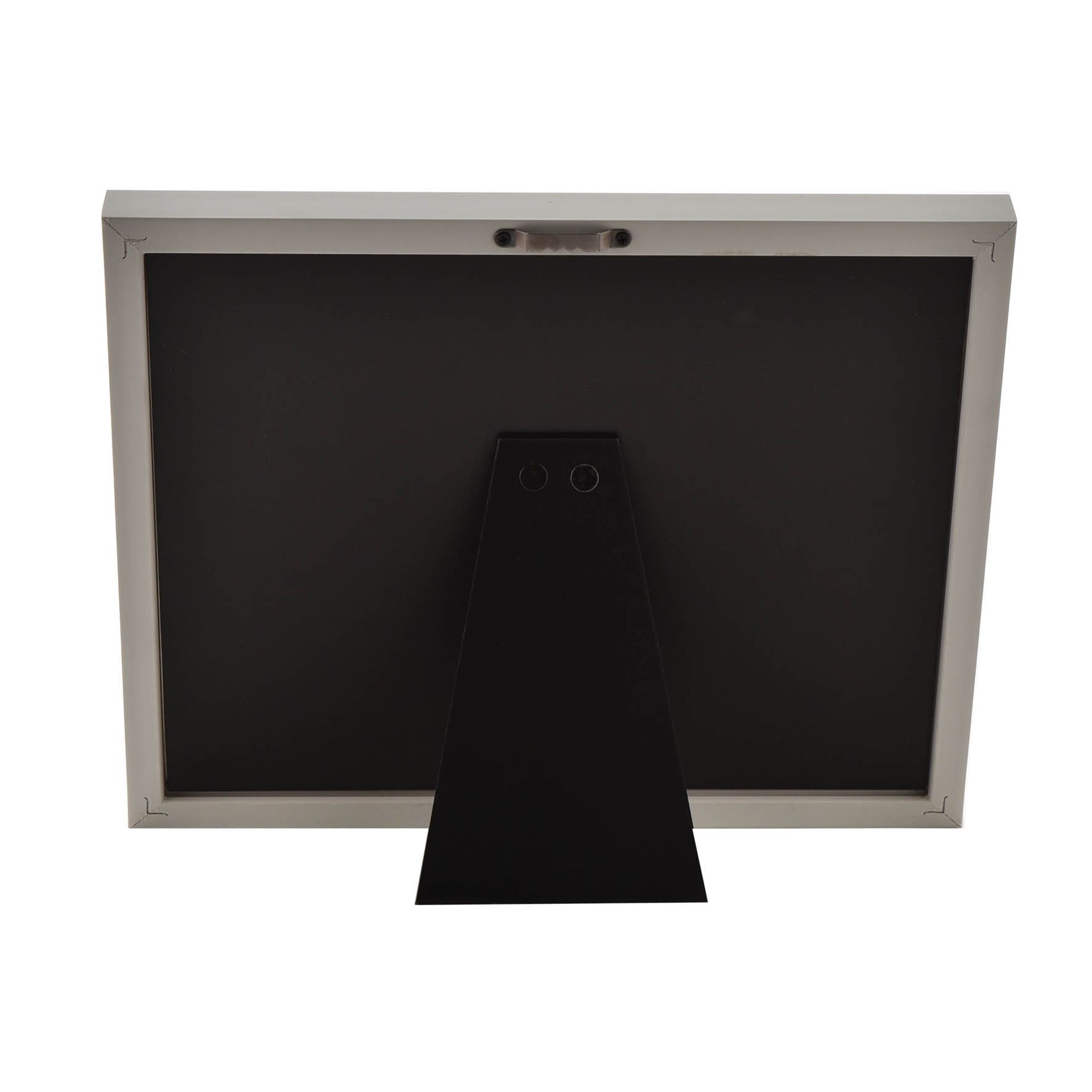 The wooden frame has a matt white finish, complete with decorative mount and crystal encrusted, silver plated teddy bear icon. It features two apertures which can be displayed either freestanding or upon the wall: one portrait, to present a baby photo and one square, for presenting an ink print of a hand using the kit provided.