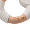 The wooden ring showcases wood sourced from sustainably managed forests and has a natural finish, providing comfort to delicate hands. It is enhanced by a grey silicone rubber ring cover, complete with teddy bear design and textured handle, all of which are child friendly, durable and long-lasting.