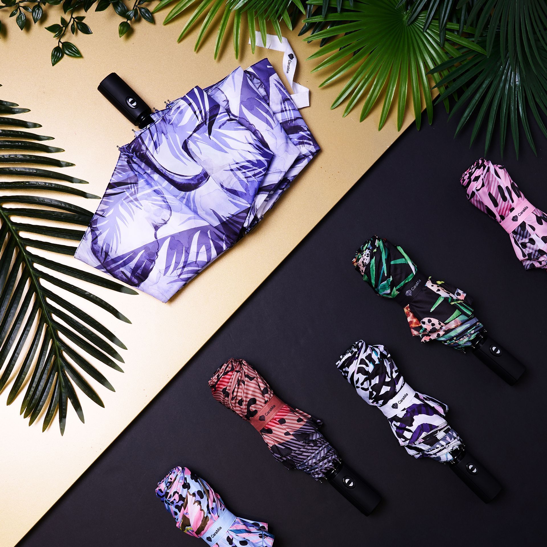 This premium umbrella has a auto open & close feature, so at a touch of a button the canopy fully opens and then press the button again to collapse the canopy… a handy function when you’re in and out of buildings or shops.