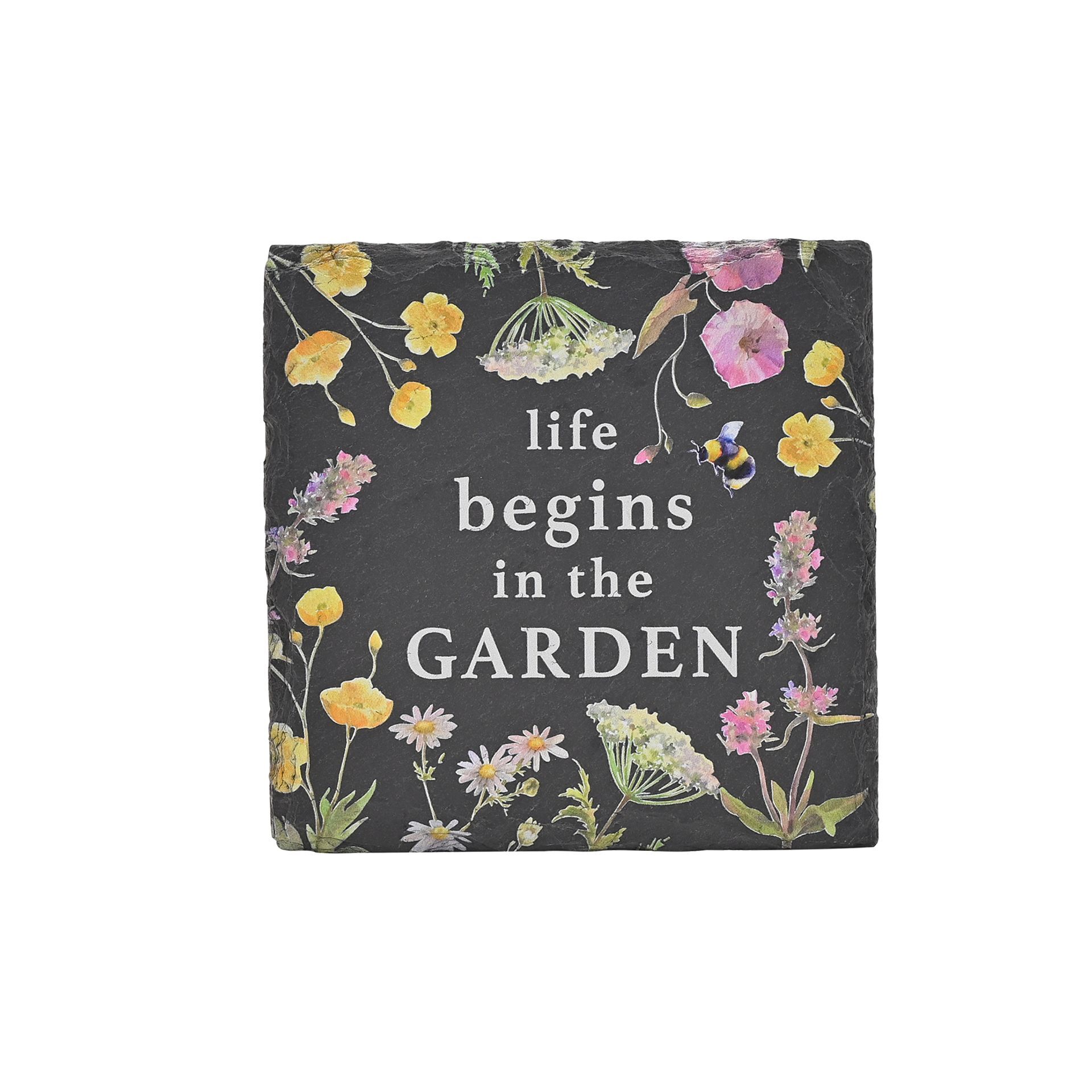 Country Living Set Of 4 Square Slate Coasters - Garden