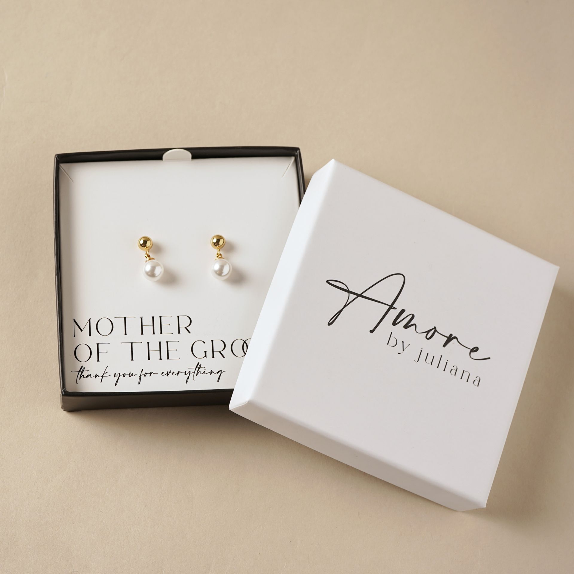 Presented in a signature Amore by Juliana® gift box, the design includes the sentiment, “Mother of the Groom – thank you for everything” creating a thoughtful keepsake to celebrate an important milestone. The classic design ensures these earrings can be treasured long after the occasion, adding a subtle touch of elegance to any outfit.