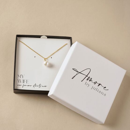 The Amore Gold Plated Necklace with Faux Pearl – My Wife is a timeless jewellery piece designed to celebrate love, commitment and meaningful moments. Featuring a delicate gold-plated chain and a classic faux pearl pendant, it offers an elegant and versatile style suited to both everyday wear and special occasions.