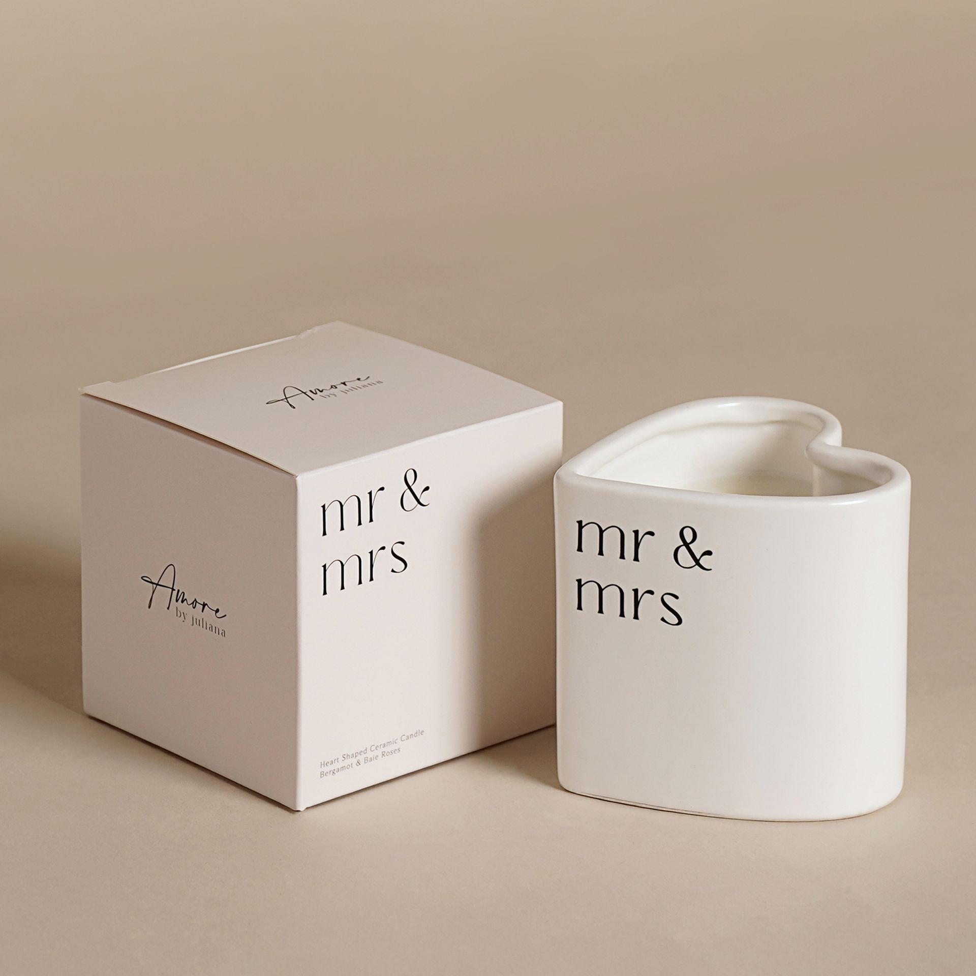 Each candle is housed in a sleek ceramic holder, finished with a message in an elegant modern script. Its heart-shaped design adds a romantic touch, while the matching keepsake box makes it instantly gift-ready for any occasion.
