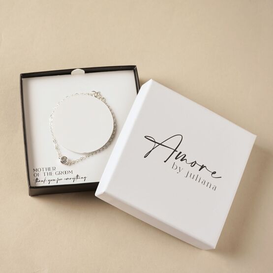 Presented in a signature Amore by Juliana® gift box, the design includes the sentiment, “Mother Of The Groom – thank you for everything,” offering a meaningful way to show appreciation. The clean, contemporary packaging enhances its presentation, making it gift-ready for a memorable wedding moment.