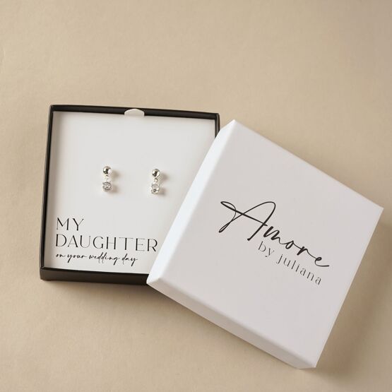 Presented in a signature Amore by Juliana® gift box, the design includes the sentiment, “Daughter – on your wedding day,” creating a thoughtful keepsake to celebrate an important milestone. The classic design ensures these earrings can be treasured long after the occasion, adding a subtle touch of elegance to any outfit.