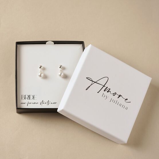 Presented in a refined Amore by Juliana® gift box, the design includes the sentiment, “Bride – our forever starts now,” creating a meaningful keepsake to mark the beginning of a new chapter. The understated design ensures these earrings can be worn beyond the wedding day, adding a touch of elegance to any occasion.