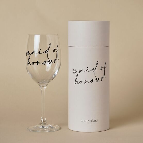 Amore Wine Glass Black Words - Maid Of Honour