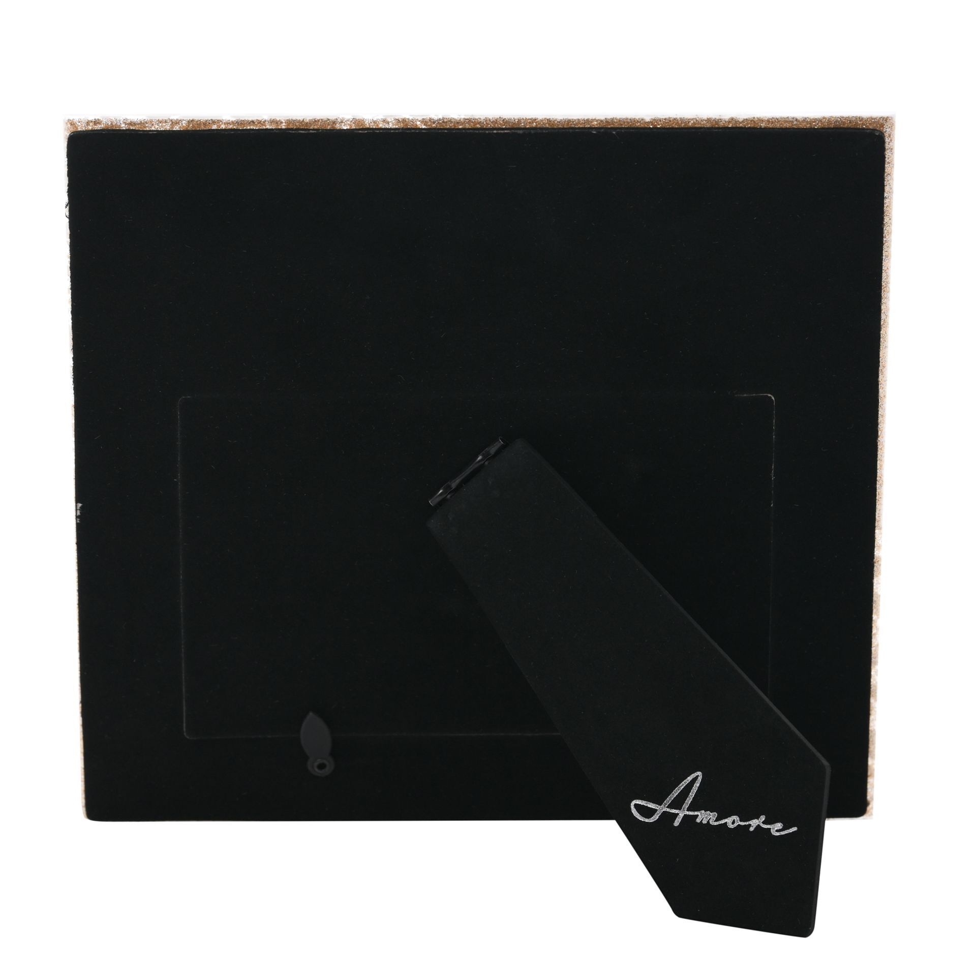 Give a perfect photo from your perfect day the chance to shine with this soft grey and gold floral glass frame. This 6" x 4" landscape glass frame features bevelled edges and a hazy gold glitter floral pattern. Gold glitter script titling reads 'Mr & Mrs'. Complete with a luxury black velveteen standing strut. A beautiful wedding gift.