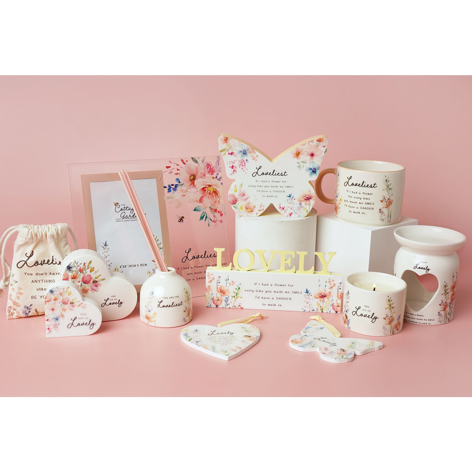 The Cottage Garden Mini Plaque - Lovely is a decorative keepsake featuring soft watercolour floral artwork and uplifting wording. Compact and easy to display, each plaque comes with a coordinating drawstring bag, making it ready to give or keep. Perfect for Mother’s Day, birthdays, or as a small token gift, it’s a versatile piece that blends design-led detail with everyday practicality.