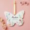 The Cottage Garden Floral Hanging Butterfly - Auntie is a decorative ceramic ornament finished with soft watercolour floral artwork and uplifting wording. Complete with a ribbon for easy hanging, it adds a colourful accent to walls, handles, or display hooks around the home.