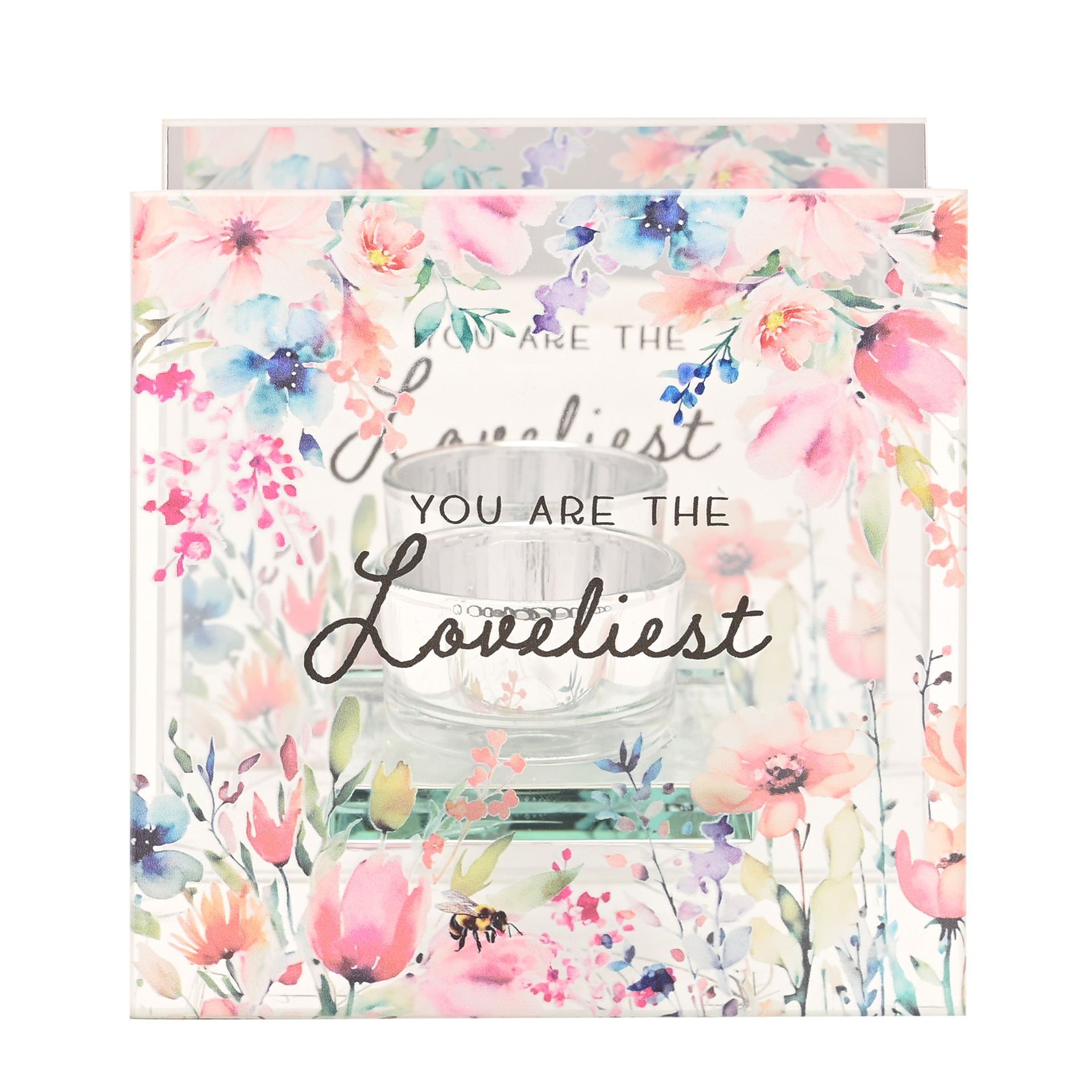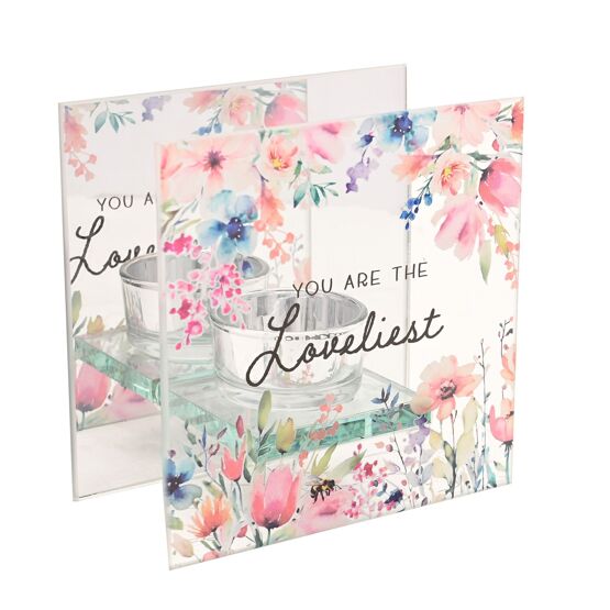 Crafted from glass and decorated with colourful floral detail, it reflects the glow of a tealight to add atmosphere to shelves, tables, or mantels.