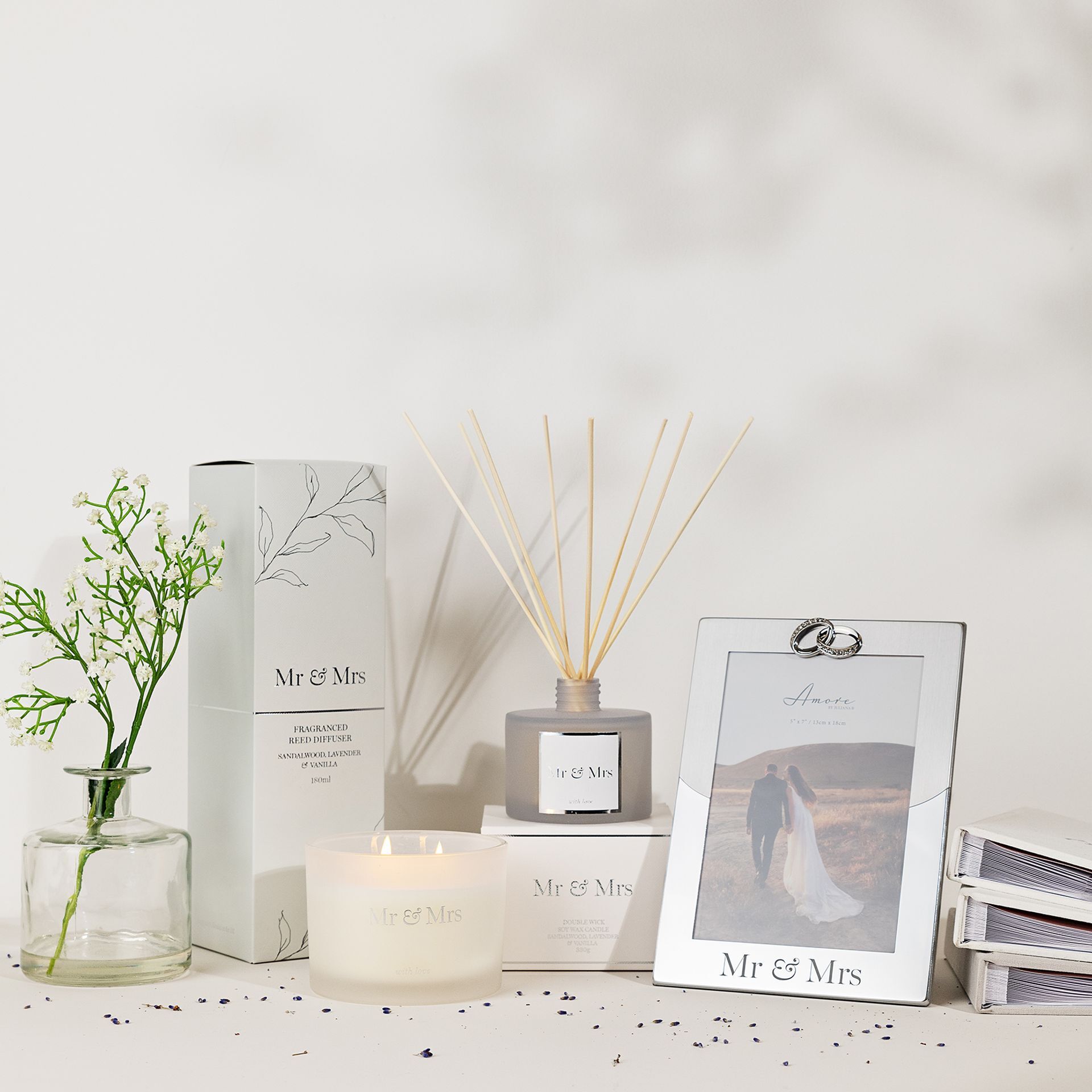 Help the newlywed couple keep the happy moments from their special day alive with this beautifully elegant 'Mr & Mrs' candle.