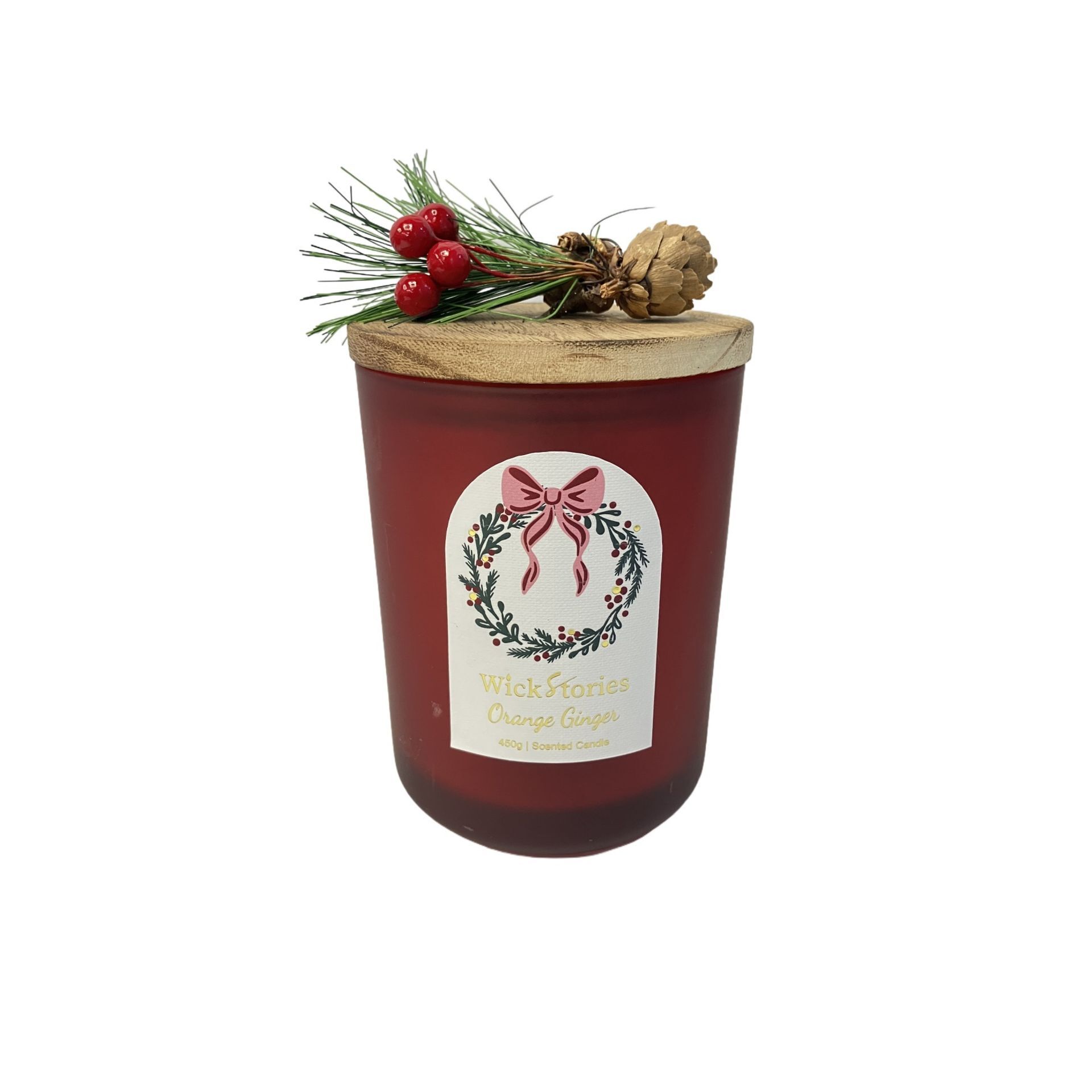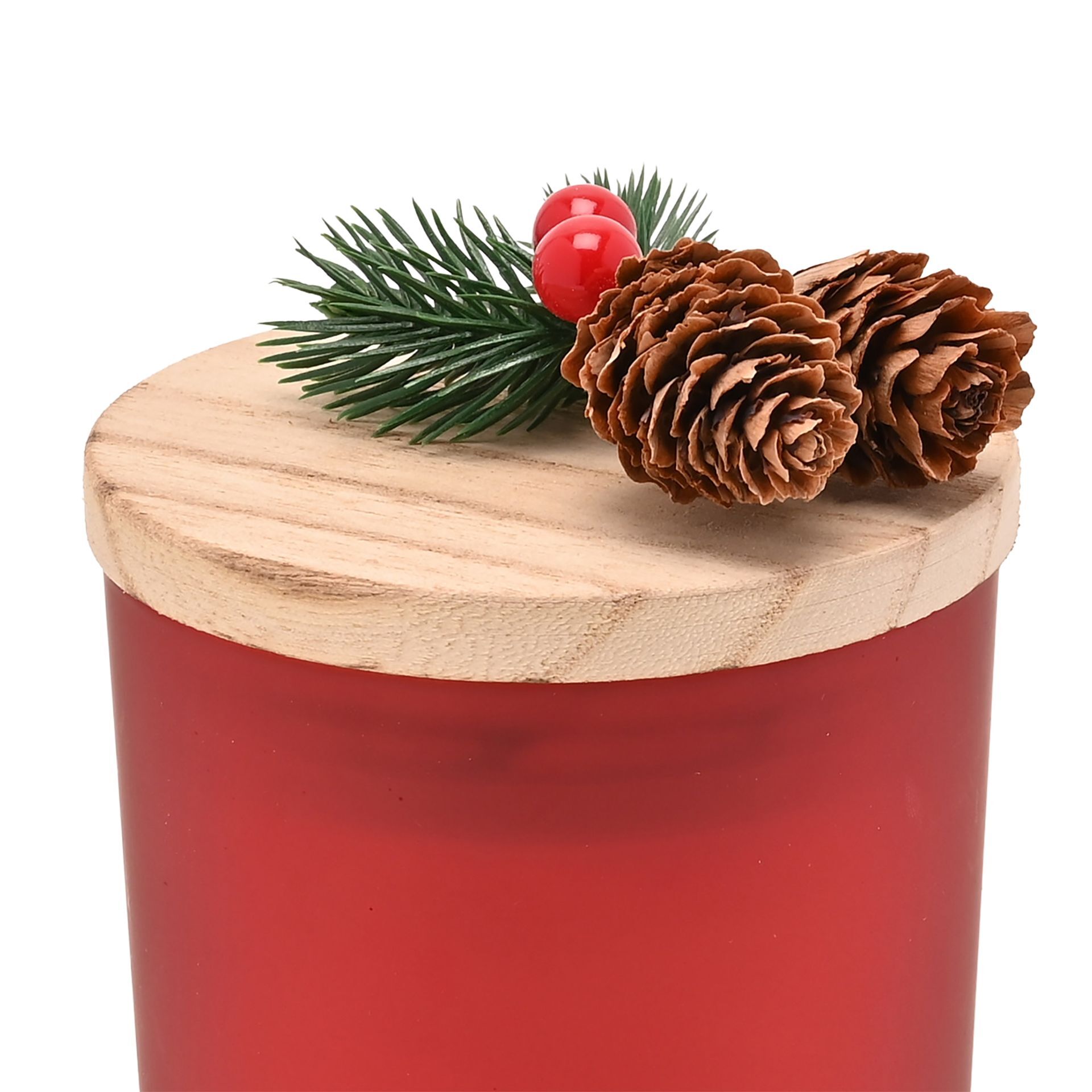 A warm and festive addition to seasonal décor, this 270g red scented candle jar comes in a rich red glass vessel topped with a wooden lid. The lid is finished with a charming acorn decoration and a touch of Christmas greenery, adding a natural, wintry feel. Perfect for creating a cosy holiday atmosphere, this candle brings both fragrance and decorative charm to any Christmas setting.