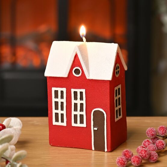 The Christmas Candle in Cottage Shape 11cm evokes the charm of a christmassy countryside retreat.