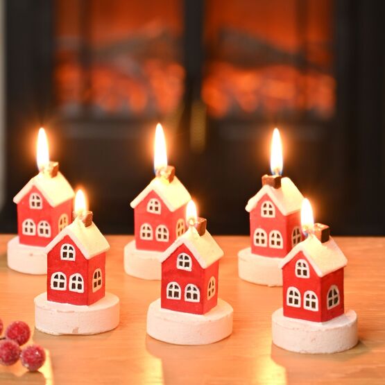 Christmas Tea Light Candle Set of 6 in Red Cottage Shape