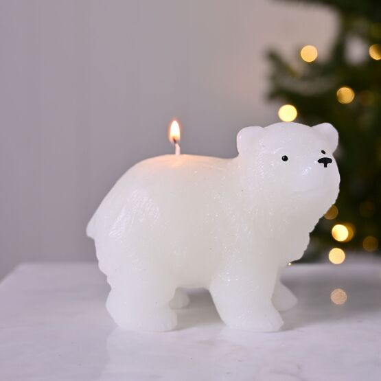 The Standing Polar Bear Candle 11cm is a charming seasonal accent for festive interiors.