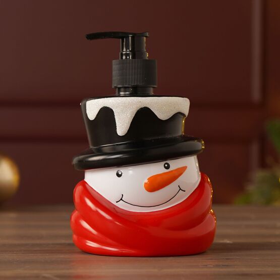 A jolly Santa Claus figurine with a red hat and white beard forms the cheerful body, designed with smooth, glossy surfaces and bold red and white colour. The pump top ensures easy use, making it a lively accent for the bathroom or kitchen sink.