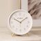 Its matt finish is enhanced by the white clock face, which itself accentuates the distinctive numbering on the Arabic dial. This is furthered by complementary satin gold metal legs and matching clock hands.