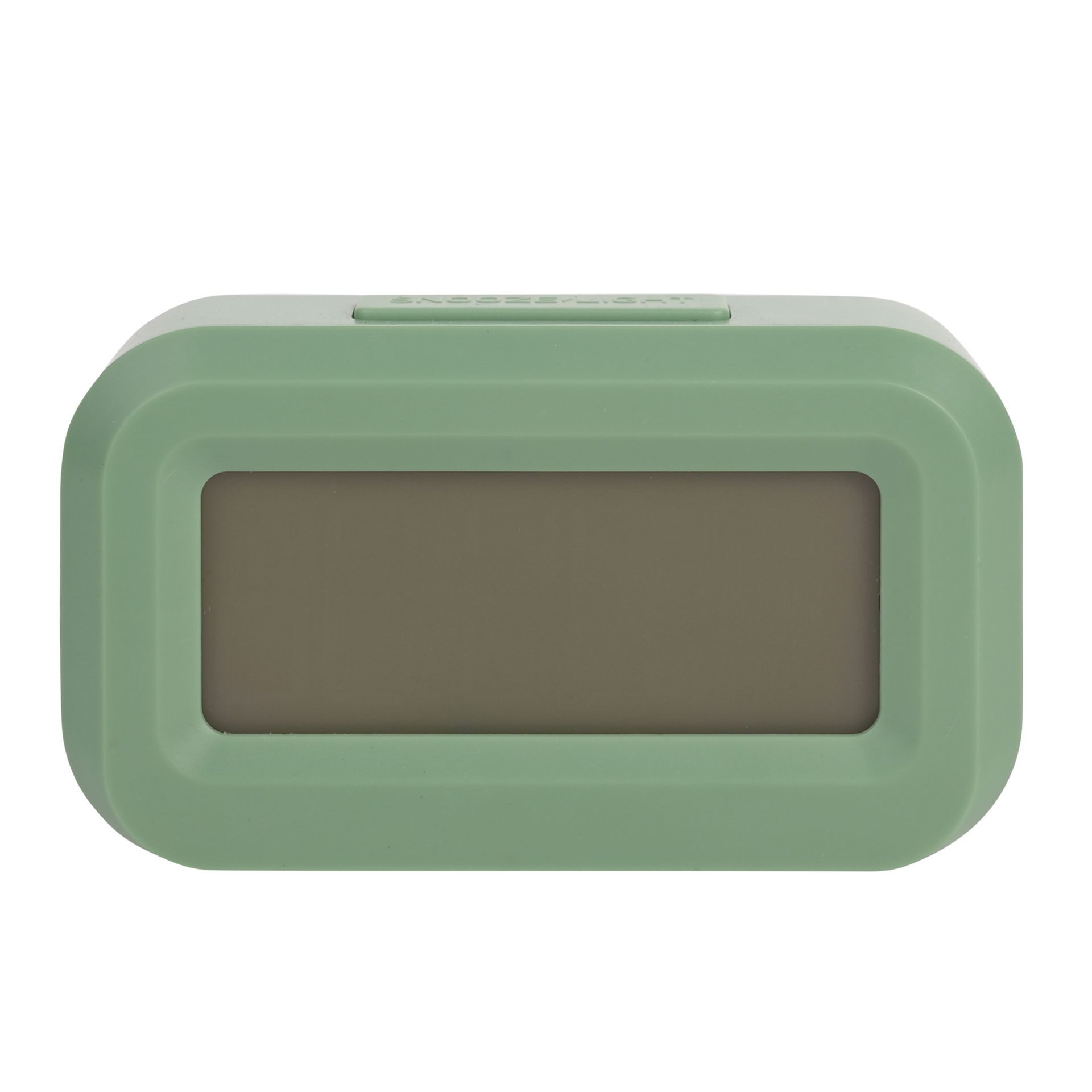 Bursting with colour and simplicity this battery-operated digital clock simply features numbers to denote the time. It also gives the date, day, and temperature.