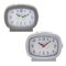 A silver, oblong alarm clock from WILLIAM WIDDOP®.