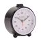 The round alarm clock showcases a black vintage finish, matching feet, and white clock face. It is completed by black clock hands, Arabic dial, snooze function and sweep movement.