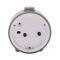 A round grey and white alarm clock with feet by WILLIAM WIDDOP®.