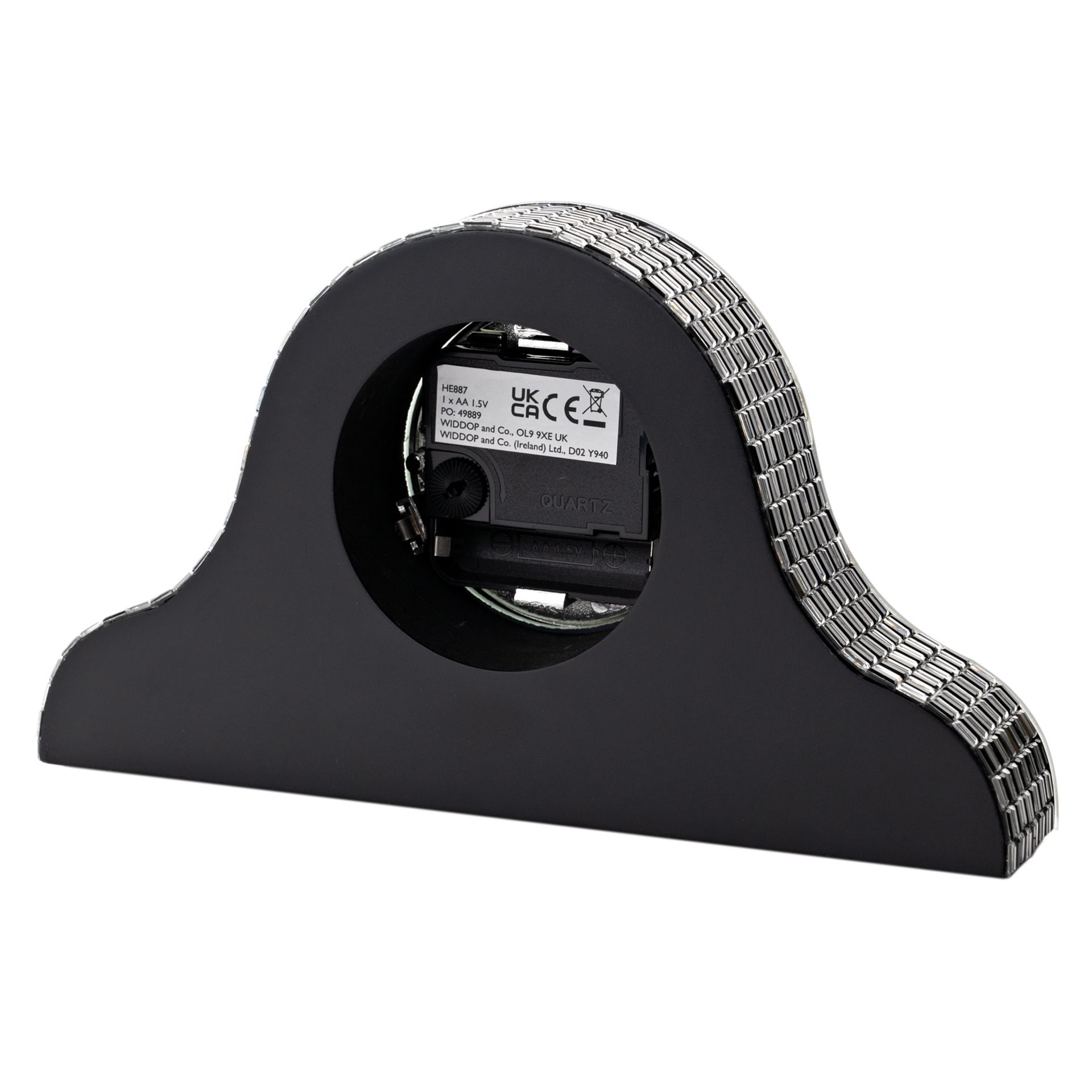 A stylish mirrored glass mantel clock from the Silver Luxe HESTIA® Collection- Unparalleled glamour, style and elegance in contemporary home and gift. The glass napoleon mantel clock design is with a mirrored glass front and back with a silver patterned top and a white roman dial. Requires 1 x MN1500 ( AA) battery (not supplied)