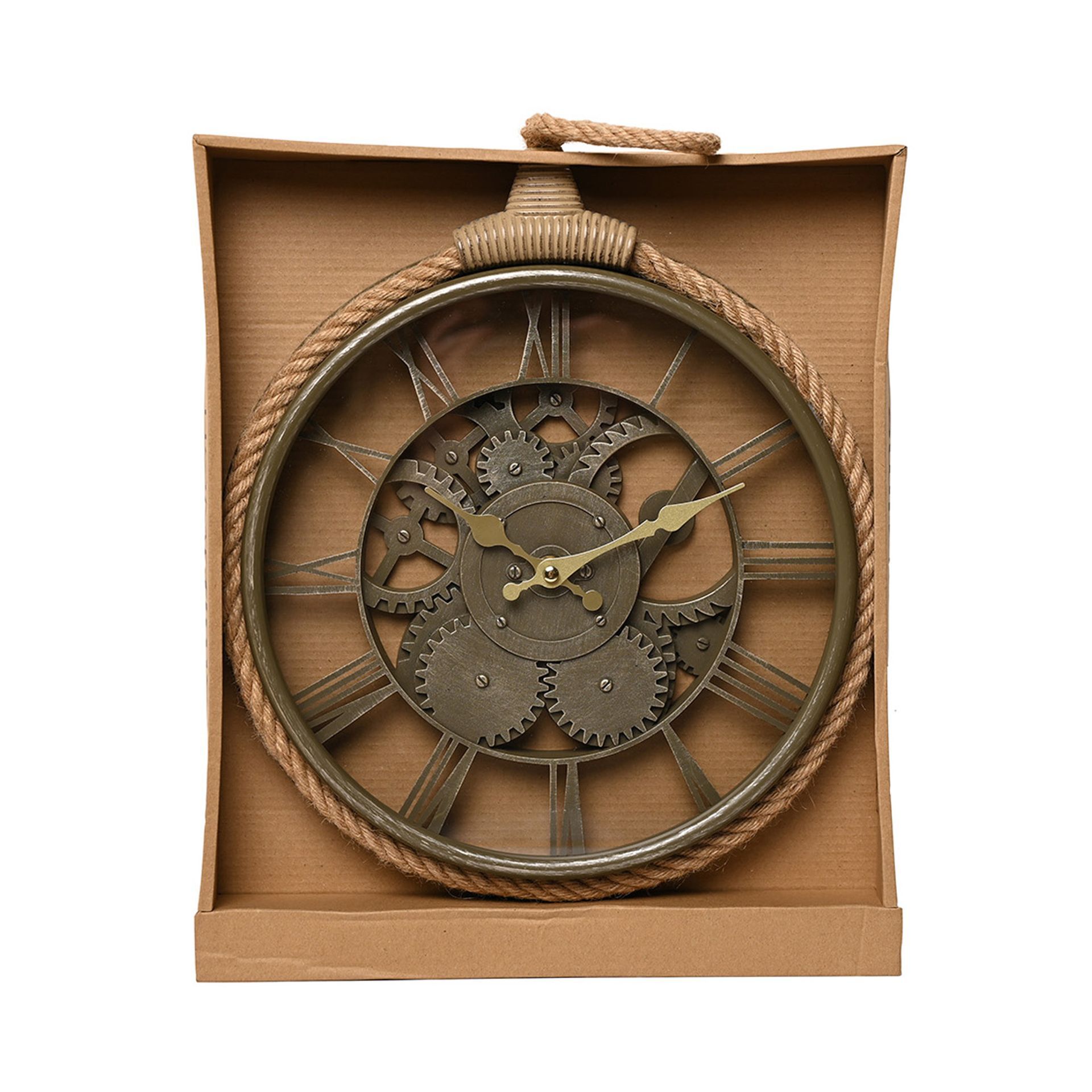 Embrace industrial chic with the Hometime Cogs & Rope Wall Clock, a striking addition to modern interiors.