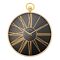 This stylish timepiece enhances any room with its gold-coloured finish and black face featuring intricate golden Roman numerals.