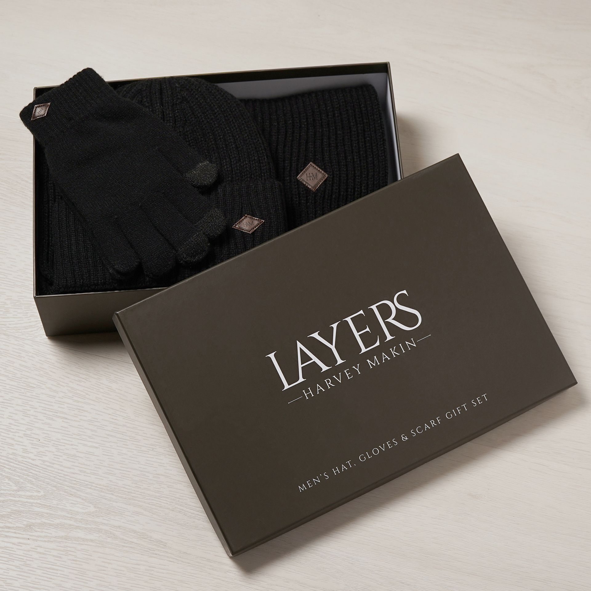 Harvey Makin Layers Hat, Gloves and Scarf Gift Set - Black