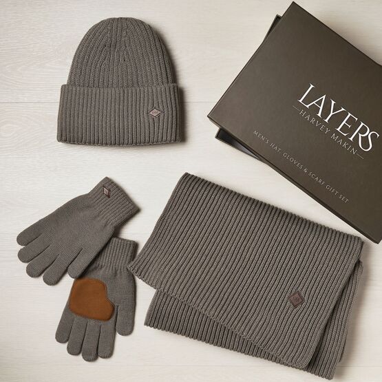 Harvey Makin Layers Hat, Gloves and Scarf Gift Set - Grey