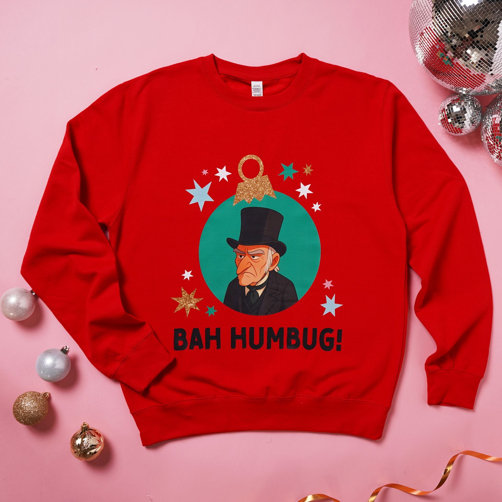 The Icons Christmas Red Sweater - Bah Humbug - Extra Large offers a playful twist on classic festive knitwear.