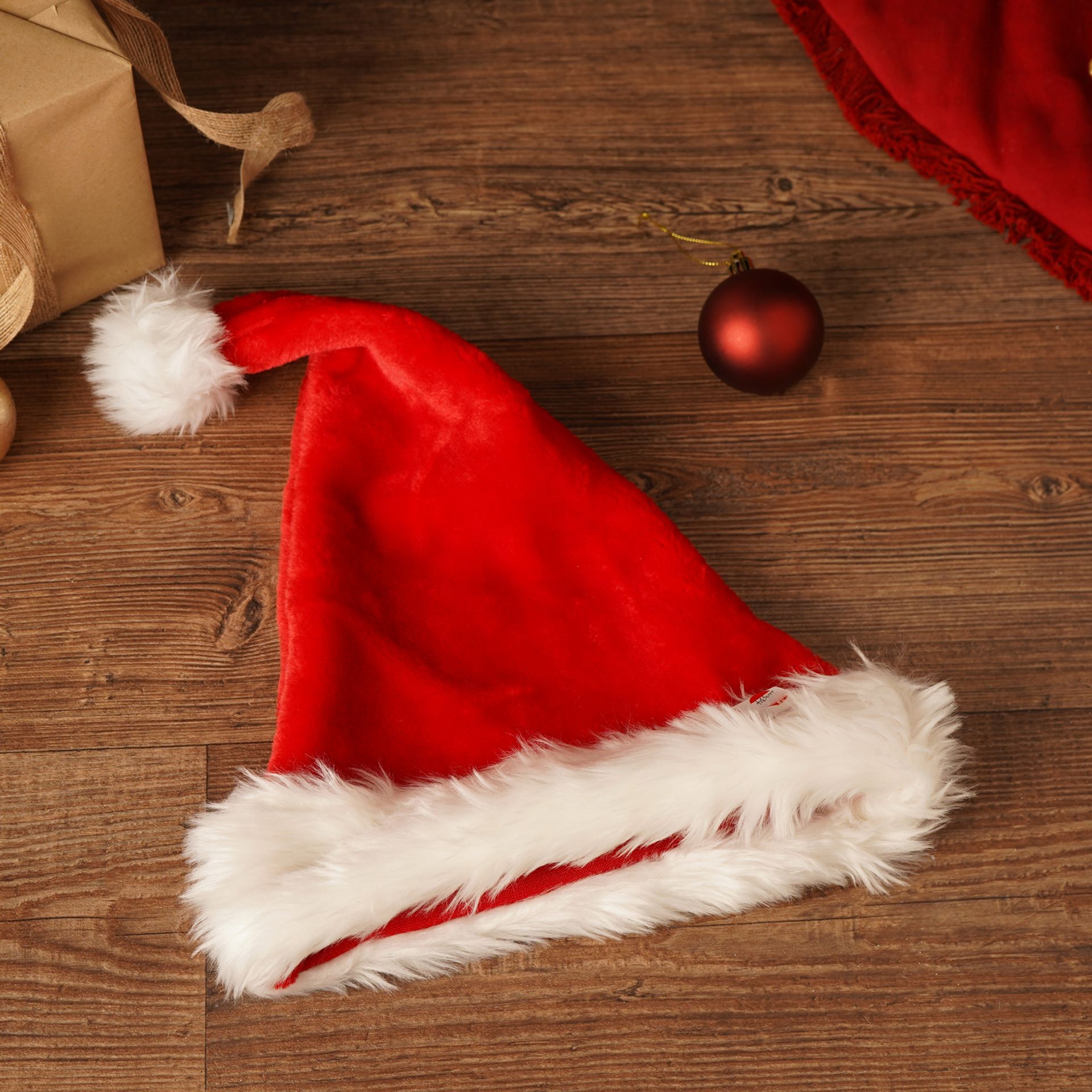 **MULTI 6** Red Christmas Plush Hat With Fur Trim & Pom Pom