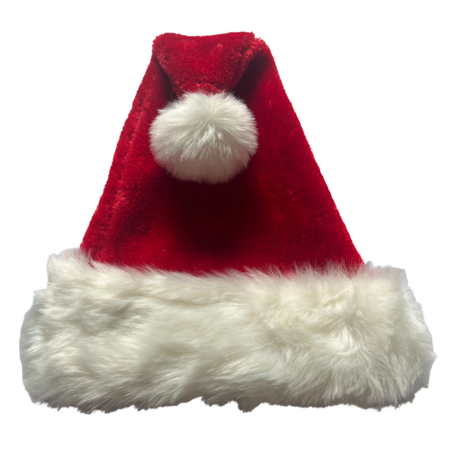 A vibrant red Santa Claus hat with a fluffy white trim and a white pom-pom on top, this piece captures the spirit of Christmas with a soft, plush texture and cheerful character. The bold colour and tactile finish make it a standout accessory for seasonal celebrations.