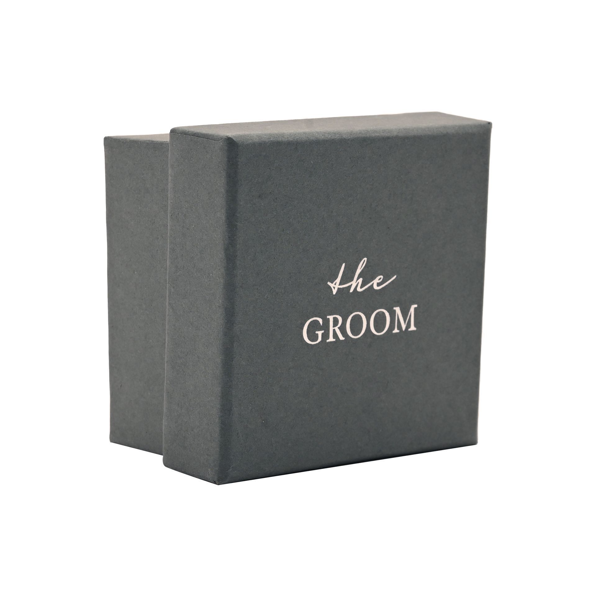 - Cushioned gift box with silver foil embossed THE GROOM lid