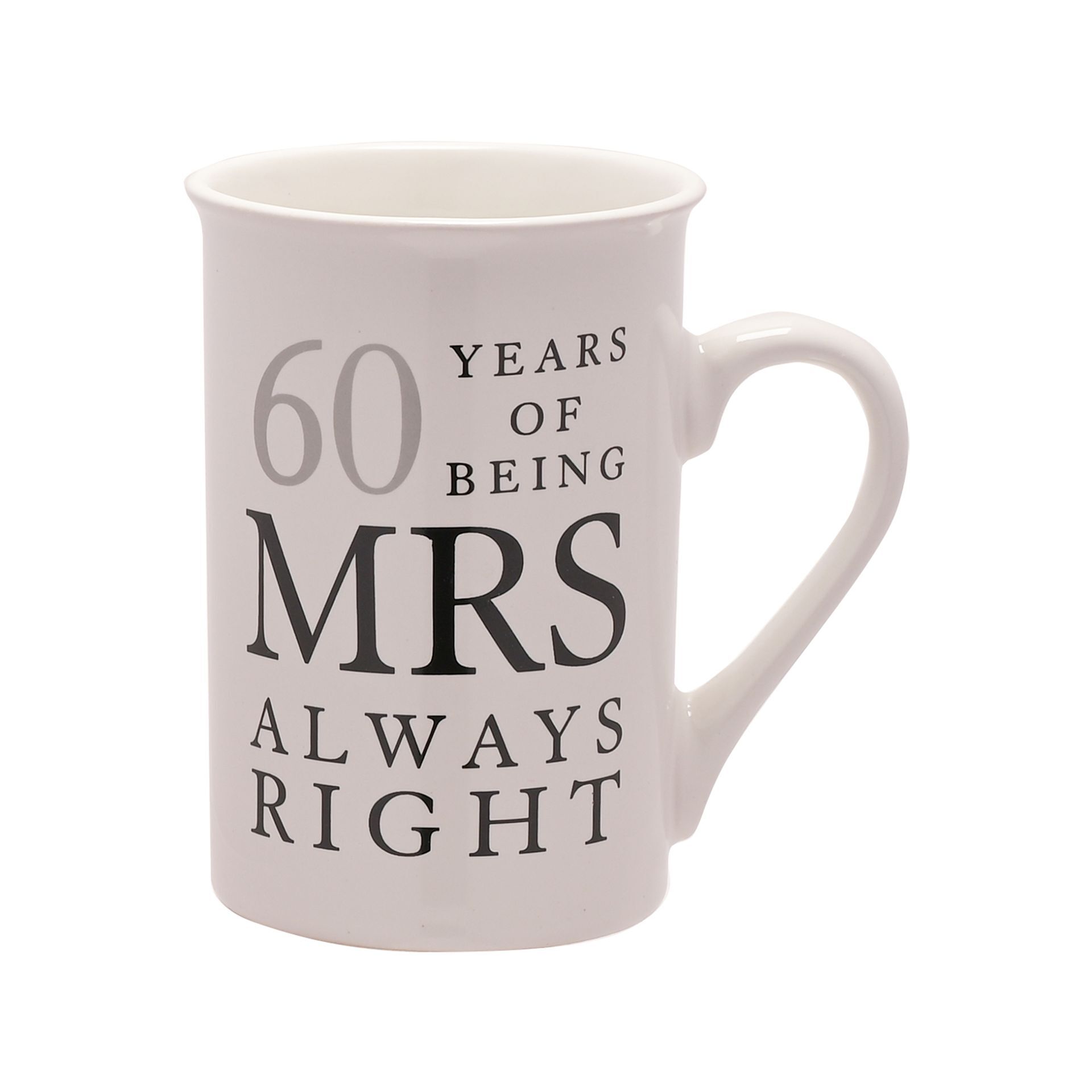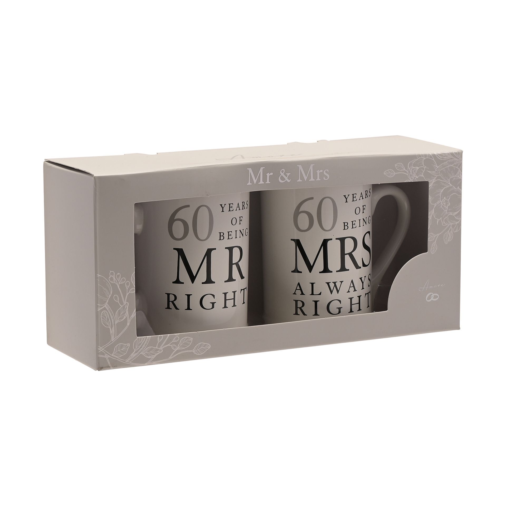 A beautiful set of 60th anniversary Mr & Mrs stoneware mugs. From AMORE BY JULIANA® - timeless giftware to celebrate the enduring wonder of love.