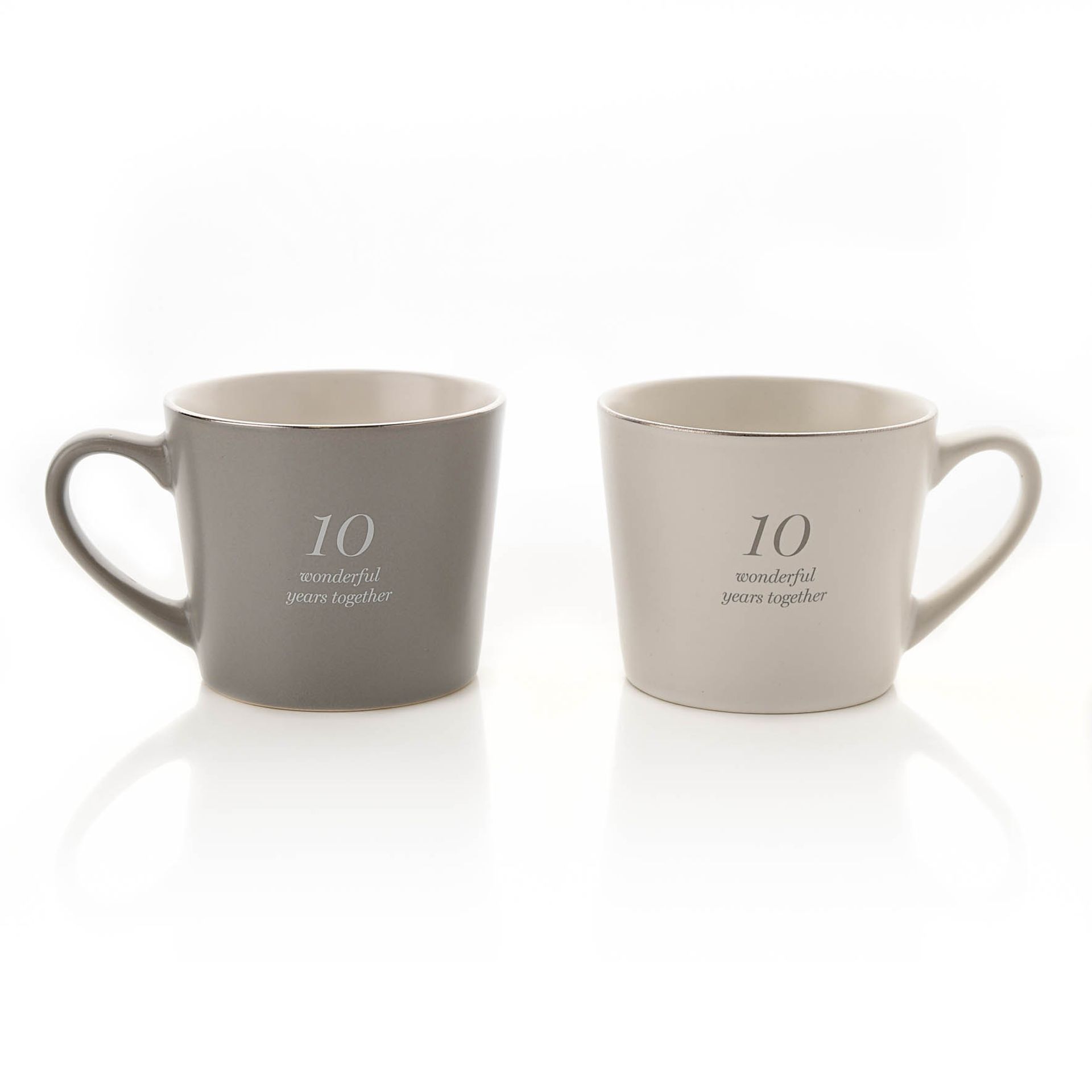 Amore Set of 2 Grey & White Mugs - 10th Anniversary