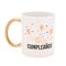 White Ceramic Mug with Gold Handle 11oz - Spanish Birthday - Balloons