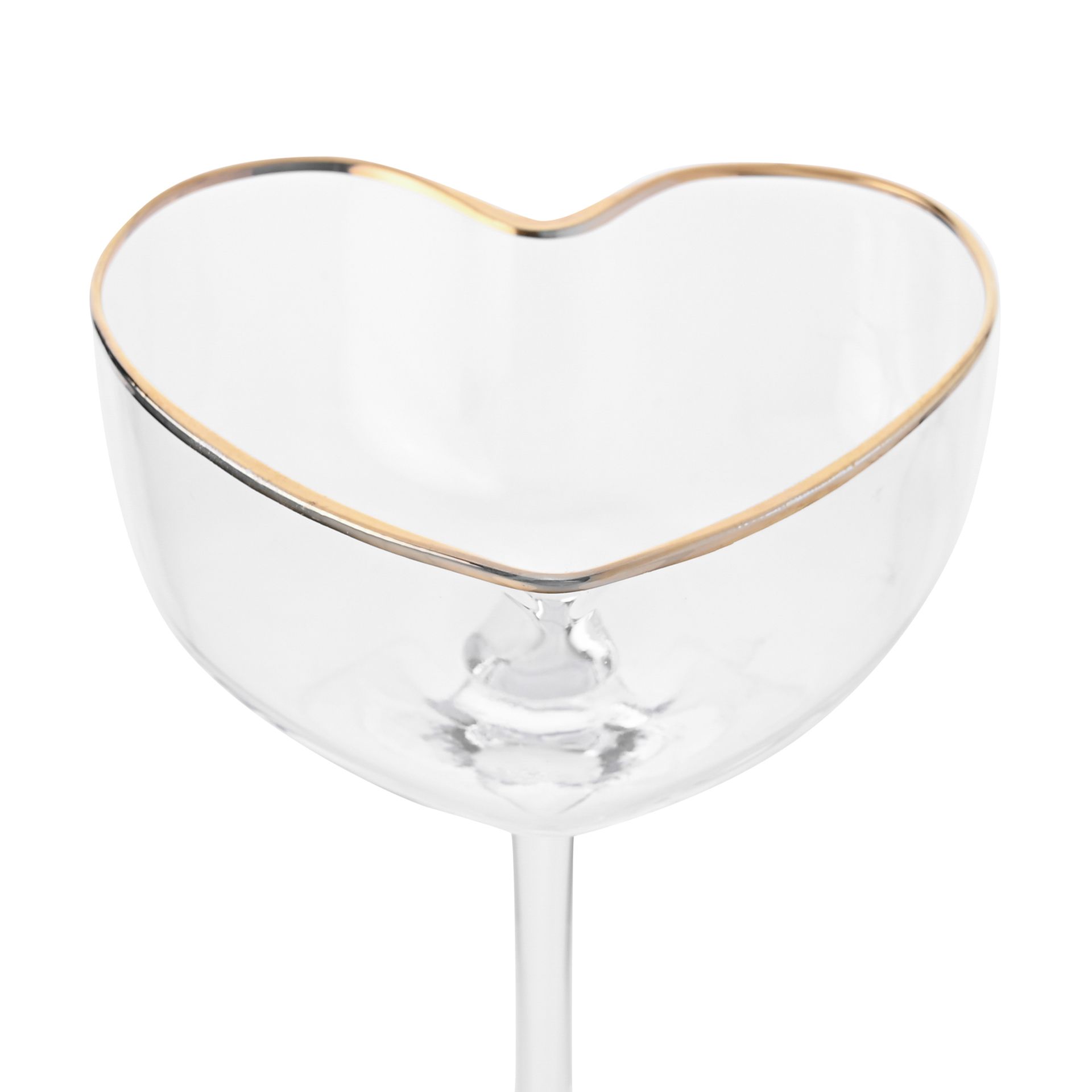 Each glass features a striking heart-shaped bowl and a polished gold rim that adds a refined touch. Whether serving classic martinis or creative cocktails, these glasses offer a memorable way to elevate any drink presentation.