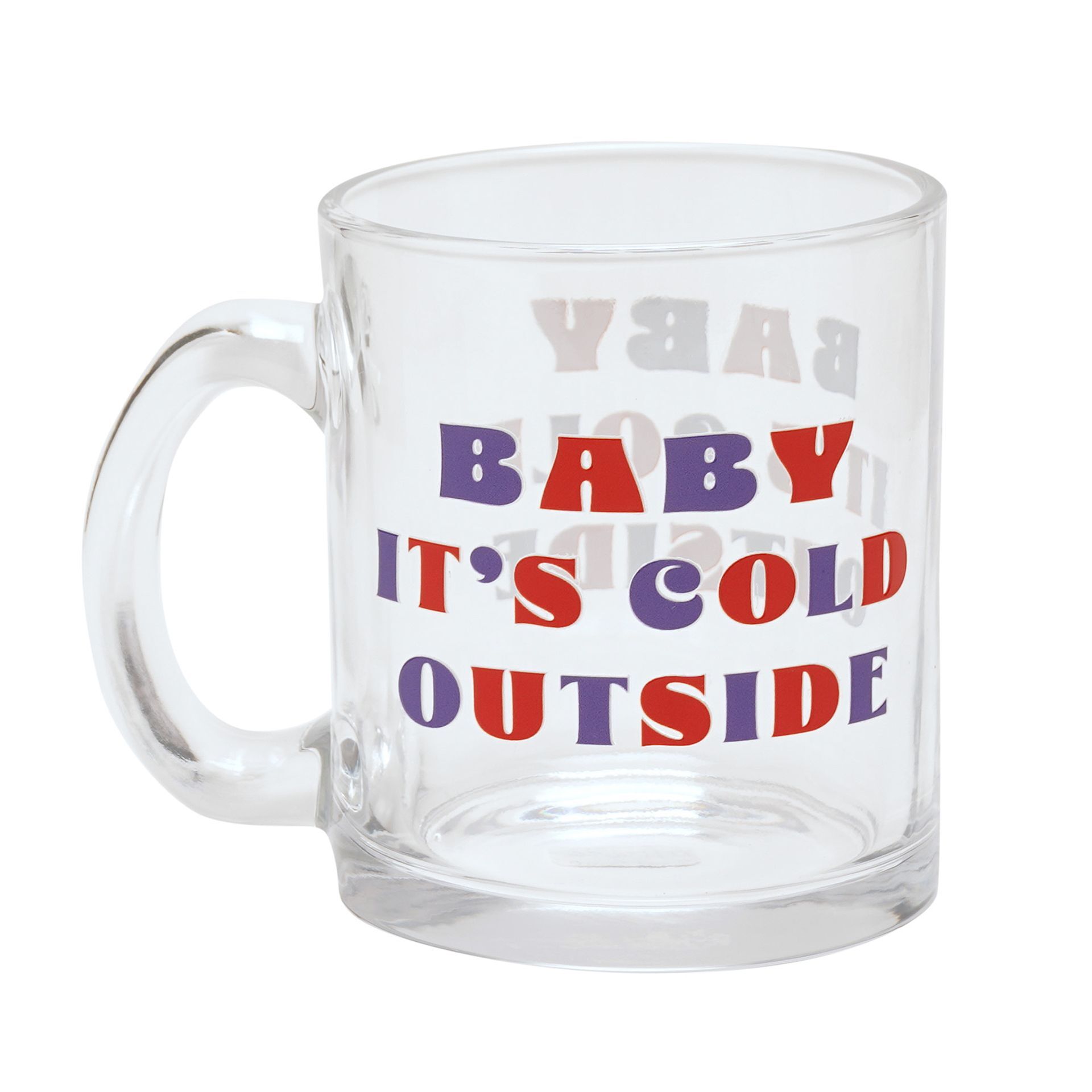 Sip hot cocoa or a festive brew from our charming 'Baby It's Cold Outside' Glass Mug. With its red and pink lettering, this mug is a delightful nod to the frosty season.