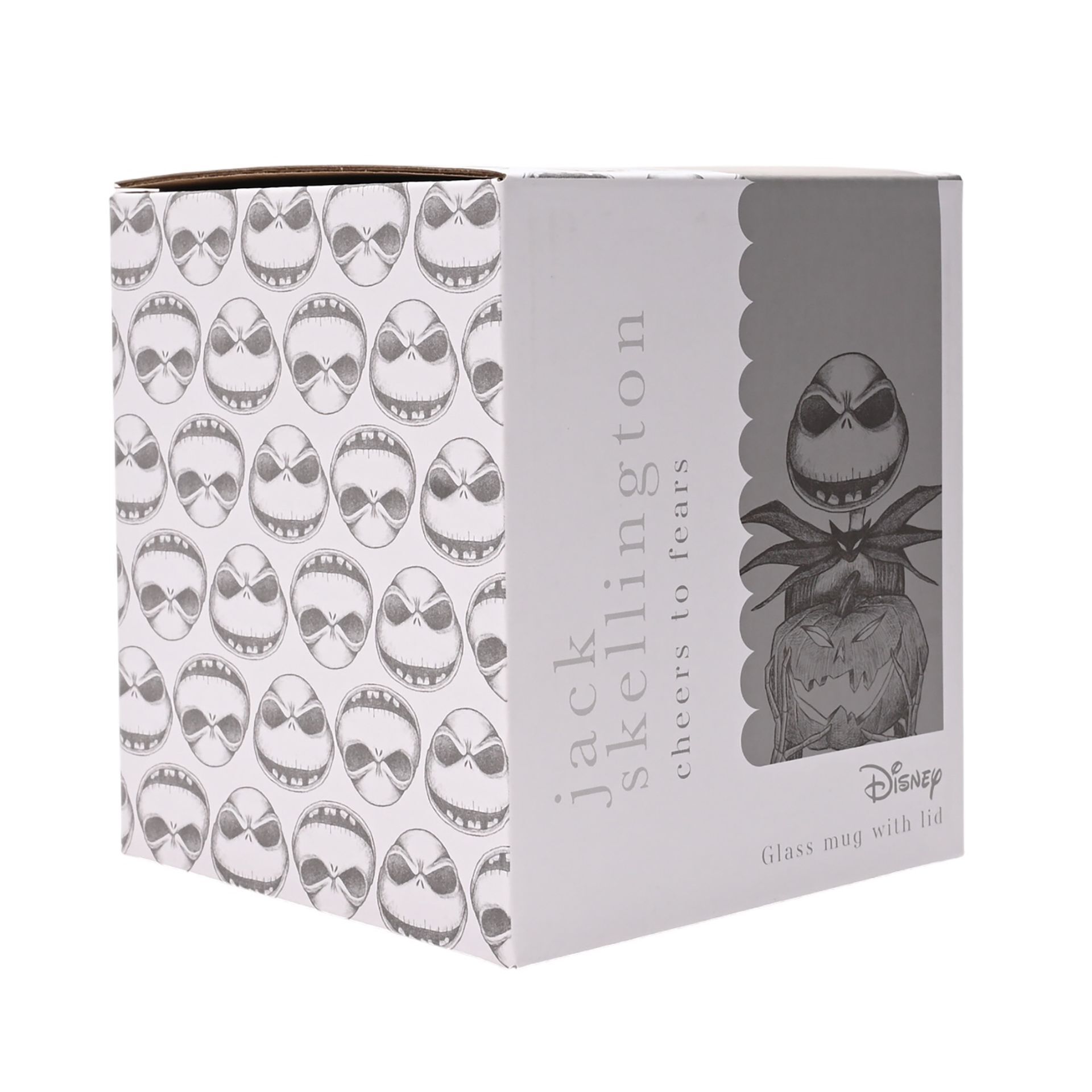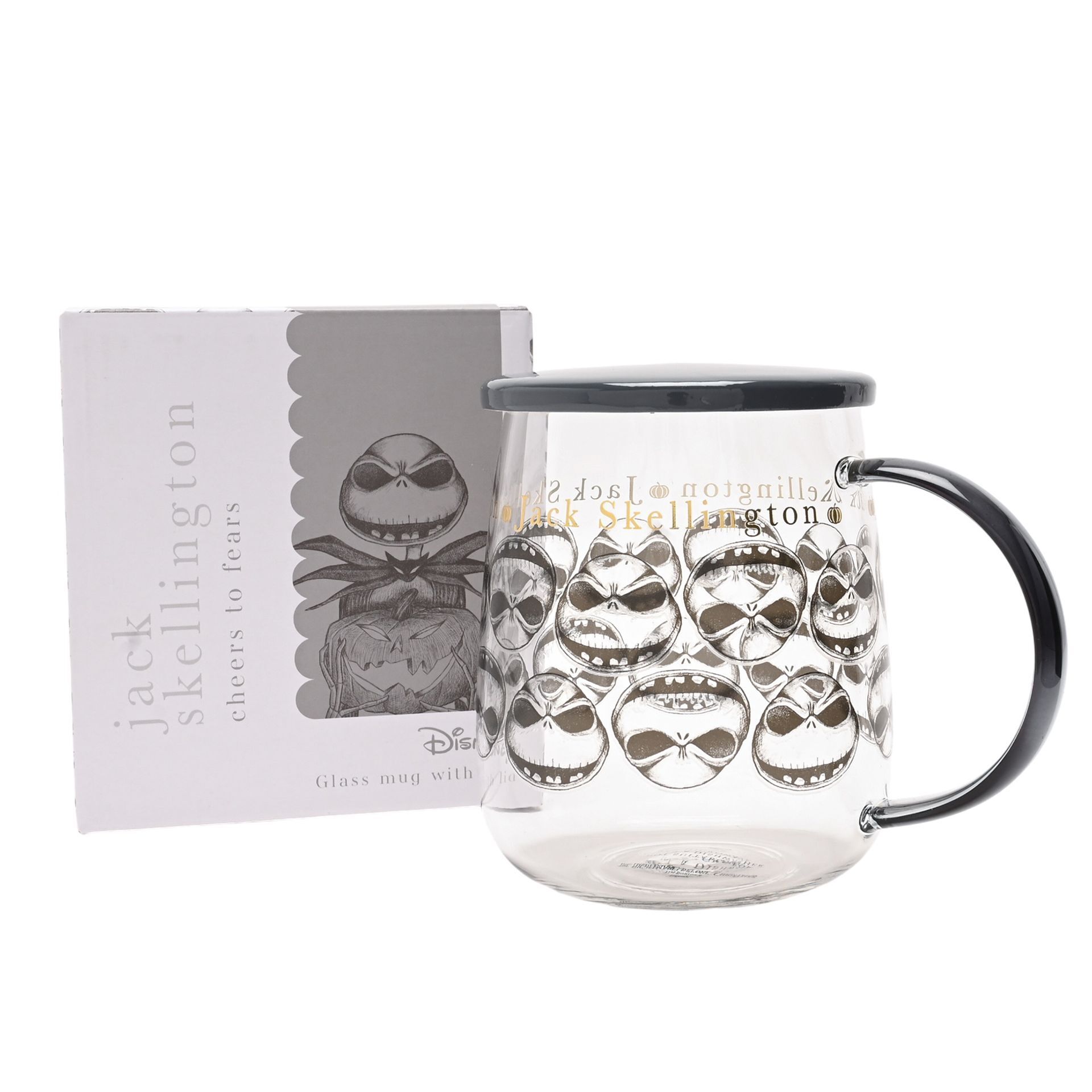 This striking mug, adorned with black Jack Skellington motifs against the glass exterior, comes complete with a chic grey lid. Perfect for Disney enthusiasts or fans of the Tim Burton classic.