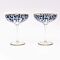 The classic cocktail glasses showcase a vivid blue leopard print design. They are finished with a gold rim which is repeated around the base.