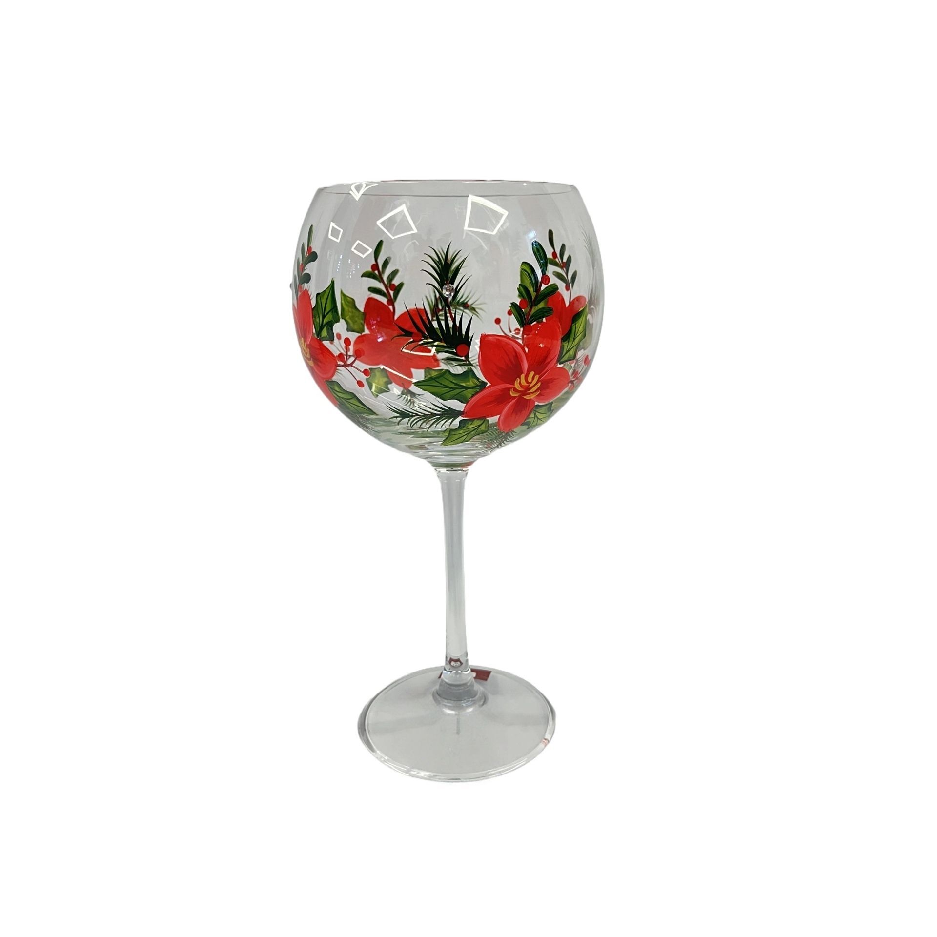 The Gin Glass Poinsettia Decal with Hand Painted Design brings festive refinement to seasonal glassware.