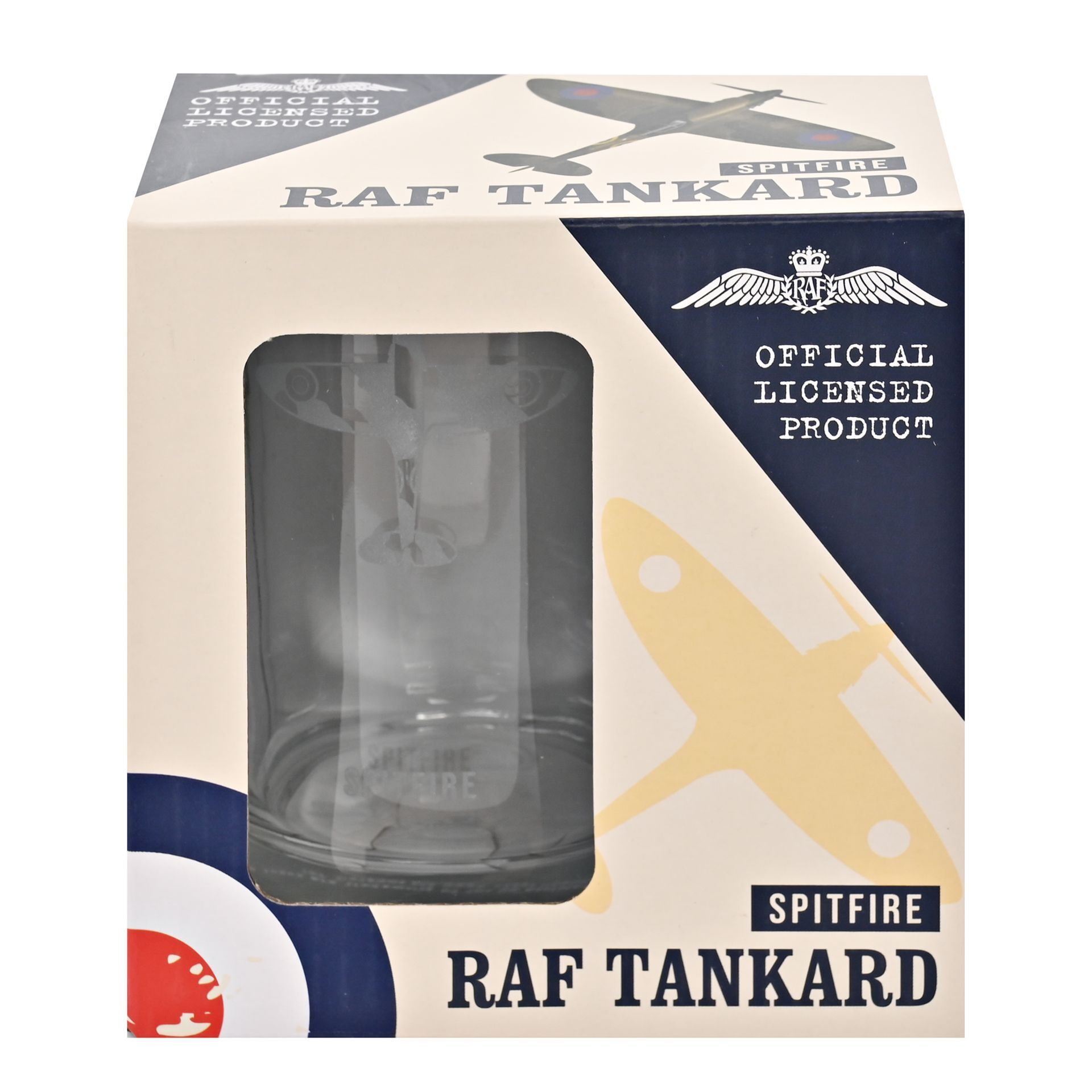 Let customers take flight with this stylish glass tankard, perfect for any RAF enthusiast. An iconic Spitfire design etched onto the front makes this mug a real talking point. With its sturdy handle and clear glass construction, it's ideal for enjoying a favourite brew whilst celebrating the RAF's rich history. The stunning artwork ensures it will add character to a collection. An ideal gift for a friend or family member who loves aviation, it's sure to be treasured for years to come.