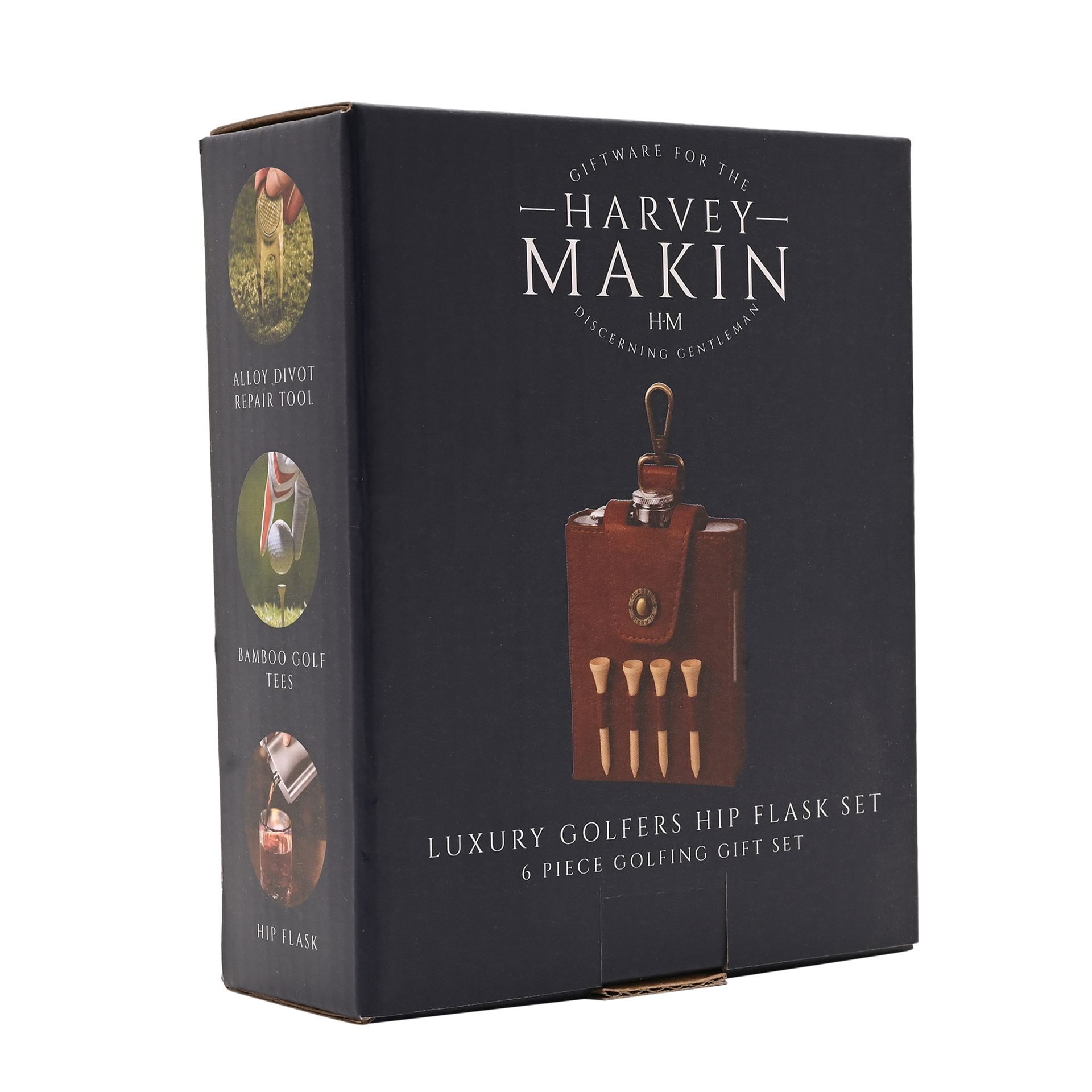 Harvey Makin Golfers Hip Flask Gift Set - Tan