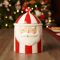 A cheerful ceramic Santa Claus figurine with a red and white striped hat and a smiling expression. Glossy colour pops, retro striping and a sweet, rounded form bring the collection's circus-meets-Christmas spirit to the kitchen.