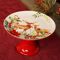 A decorative ceramic cake stand with a floral design on a red pedestal, it features a natural effect finish and a detailed deer motif among foliage. The smooth surface and vibrant base add a refined touch to Christmas table settings.