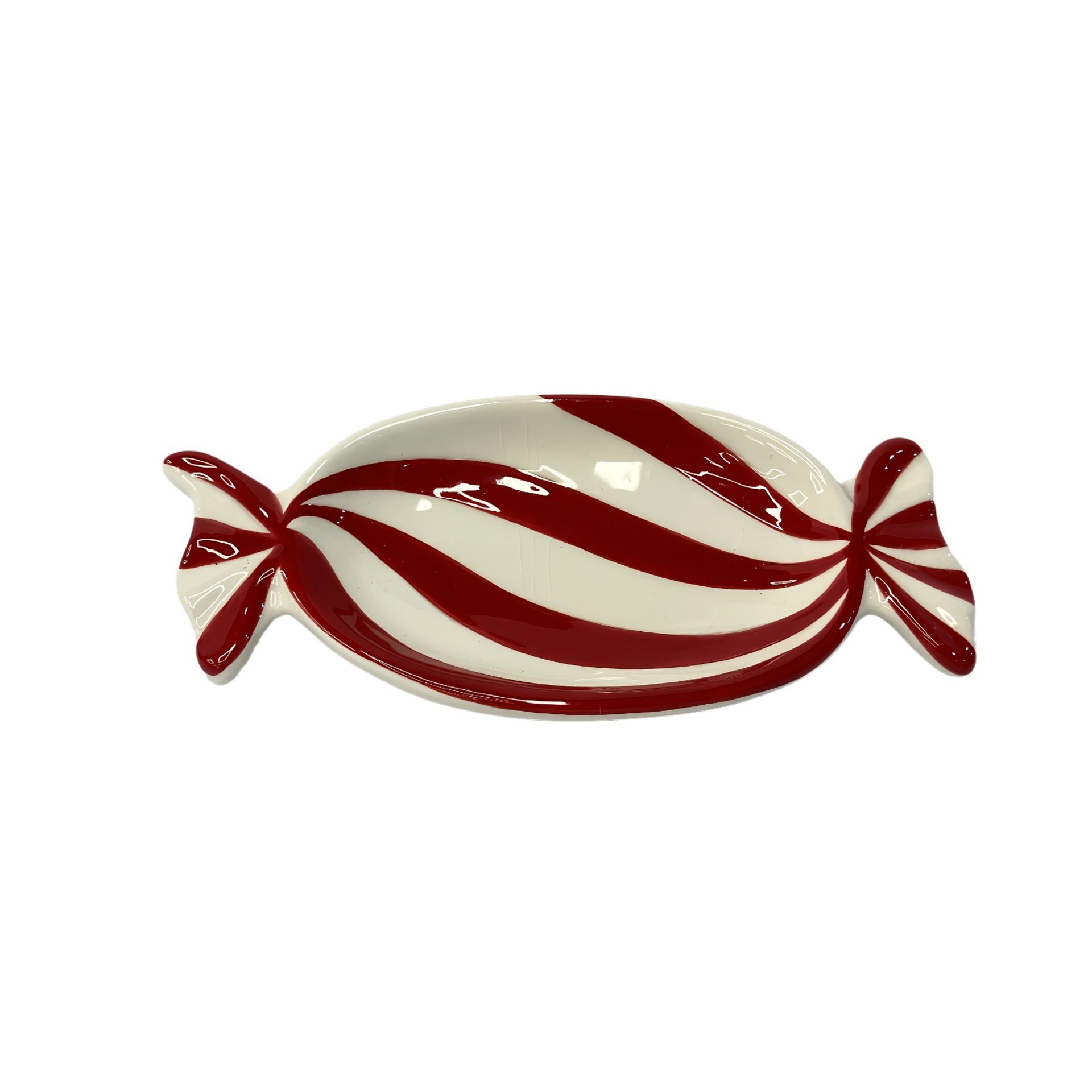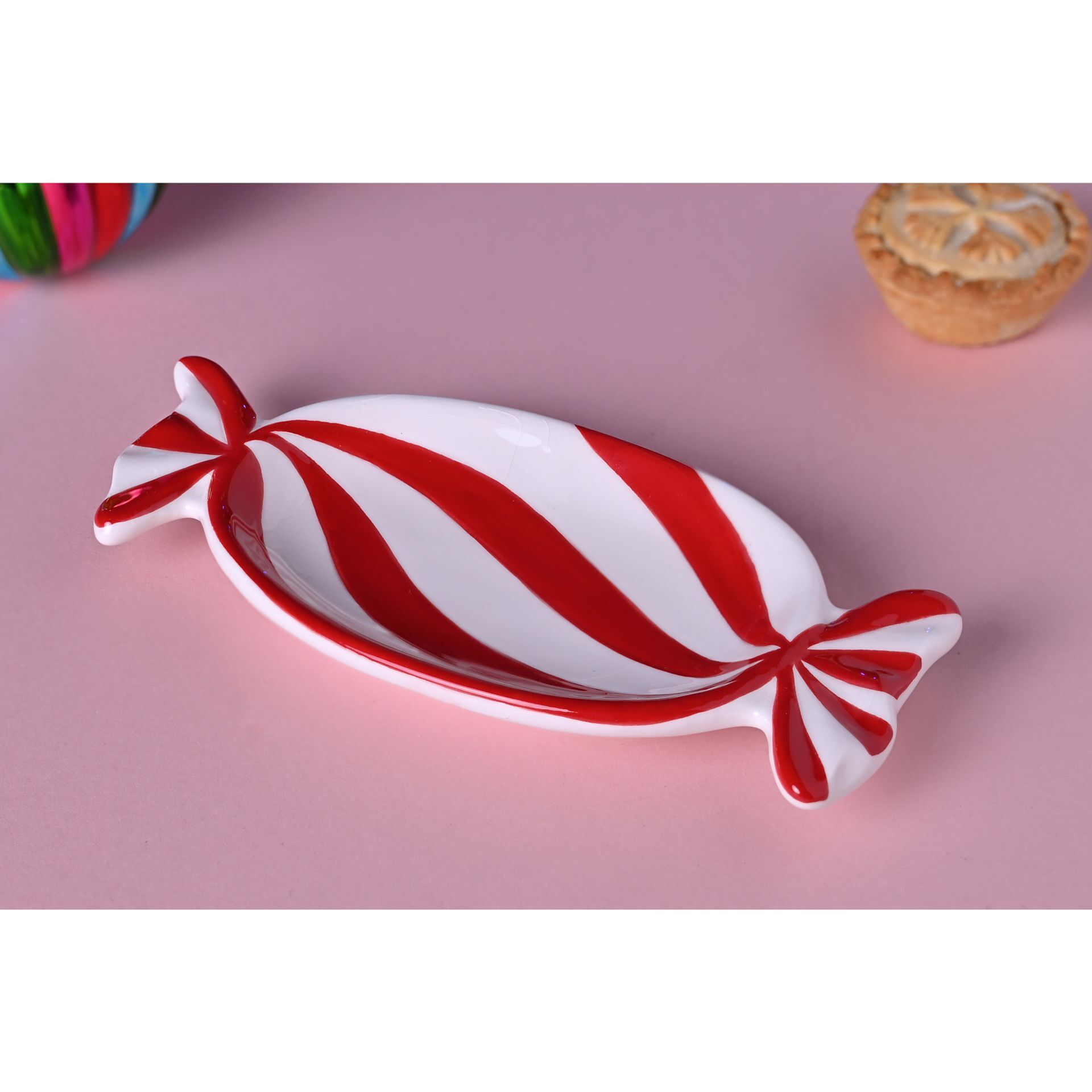 The Ceramic Peppermint Candy Plate- 20cm is a candy-shaped ceramic plate with playful peppermint stripes and standout character.