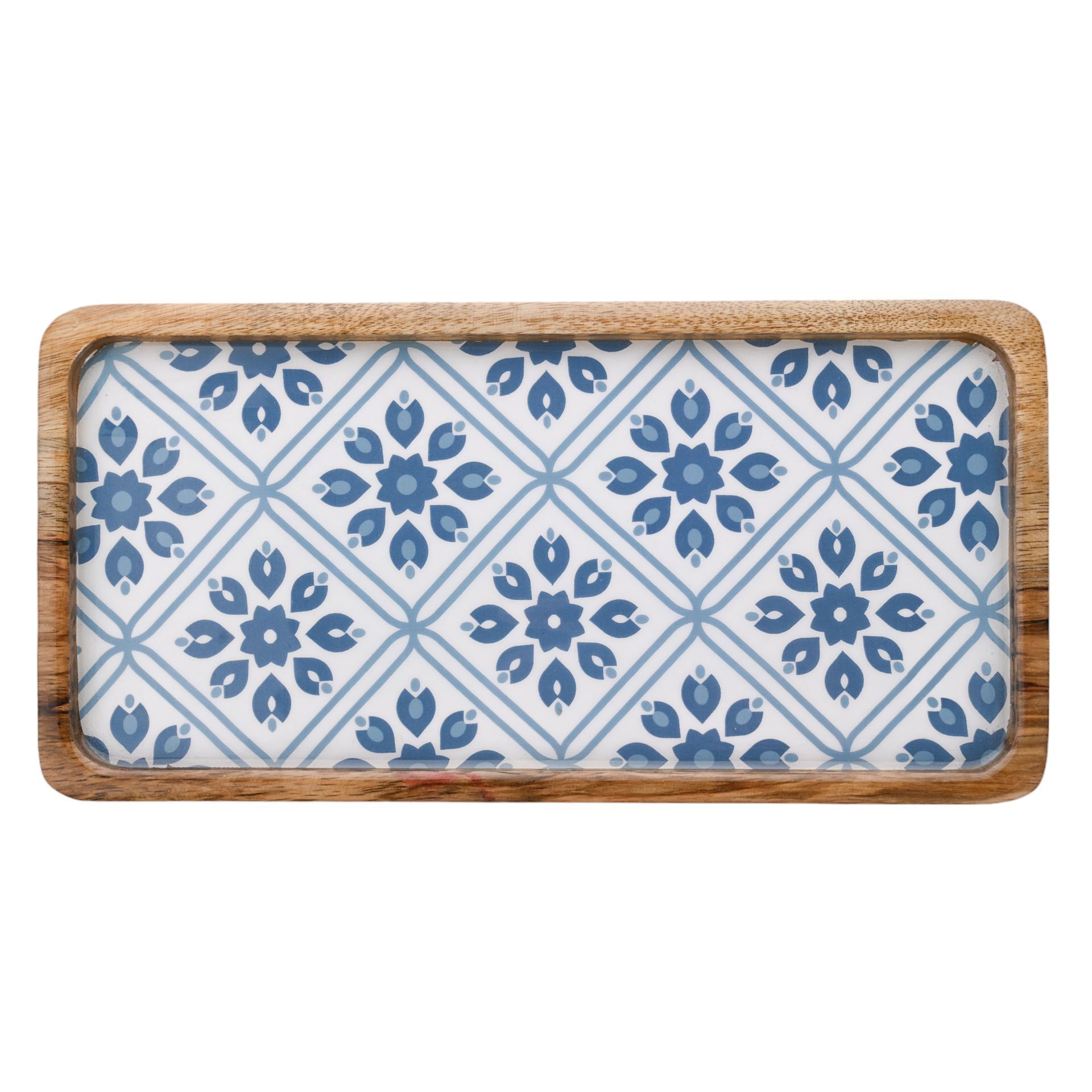 Country Living Mango Wood Serving Tray 30cms - Blue Flowers